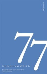 Burningword Literary Journal (ISSN 2161-8992 print / ISSN 2157-7366 online) is a quarterly publication that seeks to discover and showcase the most exciting new voices in literature. It features an eclectic mix of poetry, short fiction, short nonfiction, and visual art. The journal is available in print, e-book, and online. Burningword has been published continuously since June 2000.