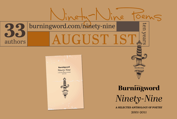 Burningword Literary Journal (ISSN 2161-8992 print / ISSN 2157-7366 online) is a quarterly publication that seeks to discover and showcase the most exciting new voices in literature. It features an eclectic mix of poetry, short fiction, short nonfiction, and visual art. The journal is available in print, e-book, and online. Burningword has been published continuously since June 2000.