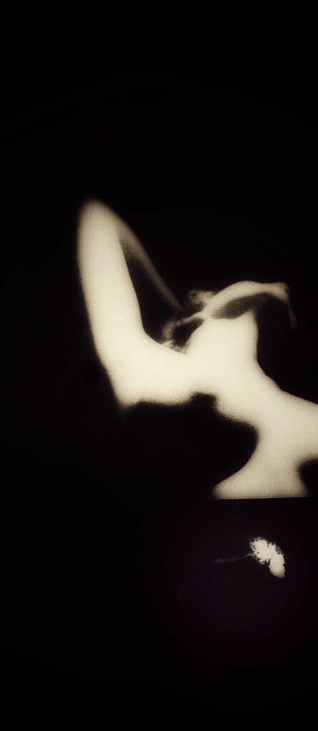 Some of the pieces depict partial, oblique, or frontal female nudity to illustrate Carl Jung’s concept of the Anima: the female part of the male psyche — sensual, often oblique female archetypes where allegories give shape to dreamscapes of the unconscious, even as the faint image of the female reflects an abstracted, fluid persona — the objective and the subjective. My intents touch upon transgender femininity. Overall, my artistic directions and aesthetics are informed by photo-artists Yoko Mizuki, Heinz Hajek-Halke, and especially Katrien De Blauwer.